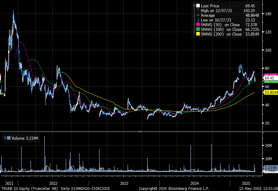 We are initiating a long position in Truecaller AB (TRUEB SS) following a misunderstood earnings report that created a technical entry opportunity. The company delivered another quarter of solid operating performance, but GAAP net income was suppressed by accounting-driven incentive costs tied to a rising share price, an issue that distorts optics but not business fundamentals.