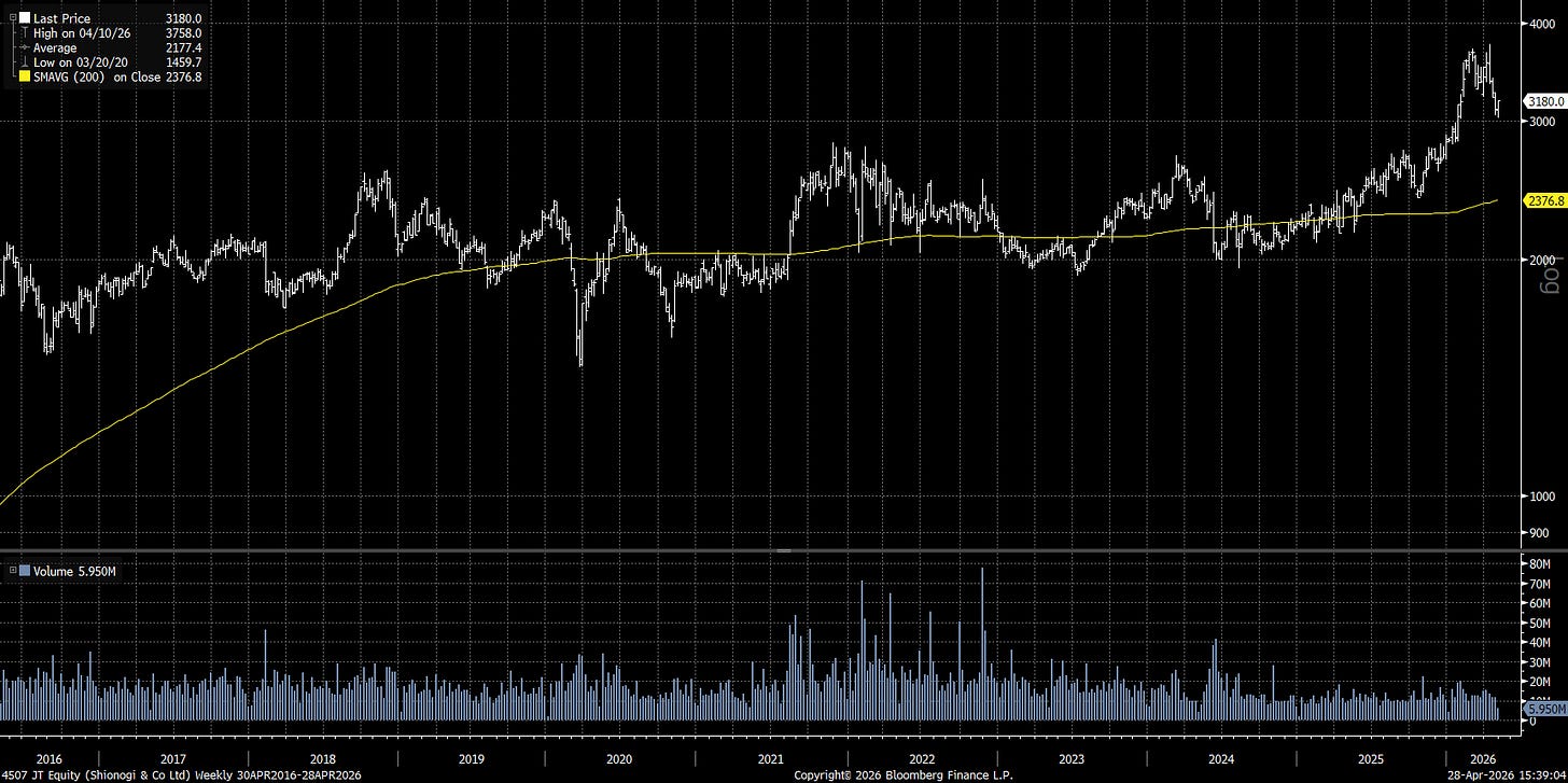 The managing principal of Ridire Research is affiliated with a private investment fund that holds long positions in the securities discussed herein (Shionogi & Co., 4507 JP), which could influence the views expressed. This publication is for educational and informational purposes only. Any performance referenced is illustrative and tracked on a per-article basis, not as part of a model portfolio or investment program. Nothing herein constitutes investment advice, a recommendation, or a solicitation. → Ridire Research Substack Disclaimer