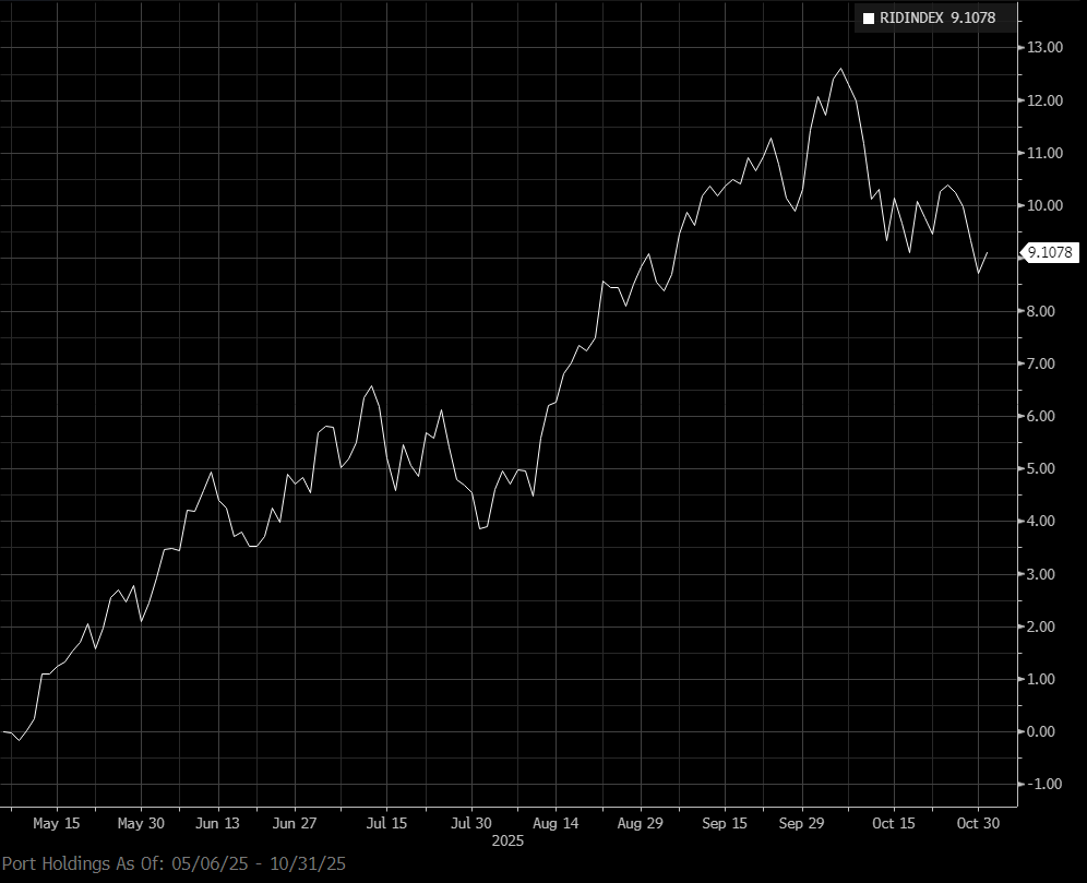 In closing: the Ridindex is built for real exposure, sized with conviction, and hedged with flexibility. Trades go live in real time, performance remains fully transparent. The next review drops after the November close, until then, stay sharp.