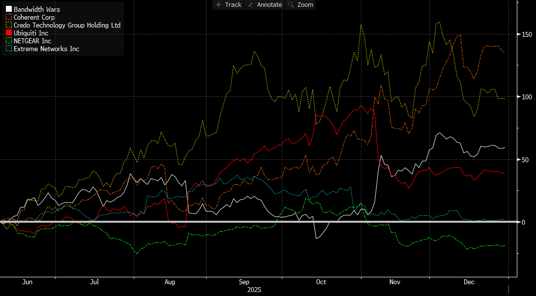 Rather than making a directional call on technology or equity markets broadly, the work focused on relative fundamentals inside the connectivity stack, who is positioned to benefit from secular demand for bandwidth, and who faces structural headwinds as architectures evolve.