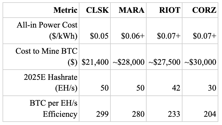 Lowest Industry Cost Structure: CLSK’s unit economics remain profitable even at sub-$25K BTC.