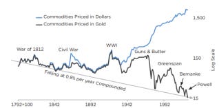 Macro Environment Favoring Gold: Contrary to mainstream economic predictions, high interest rates have driven gold prices higher instead of lower. This is primarily due to a shift in global capital flows and concerns over U.S. monetary policy. High interest rates led to higher gold prices (not lower, as bank analysts predicted); and commodities fell in terms of gold to a new 212-year low, which should lead to higher real margins for gold mining over time.